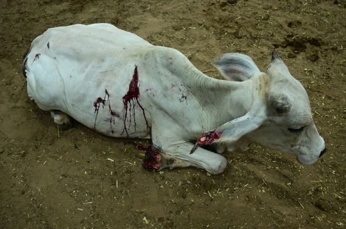 A Gausevak hits a cow but later spread his wings and soar into the sky